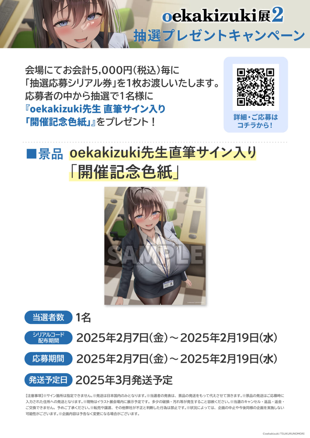 応募者の中から抽選で『oekakizuki先生直筆サイン入り「イラスト展開催記念色紙」』をプレゼント!