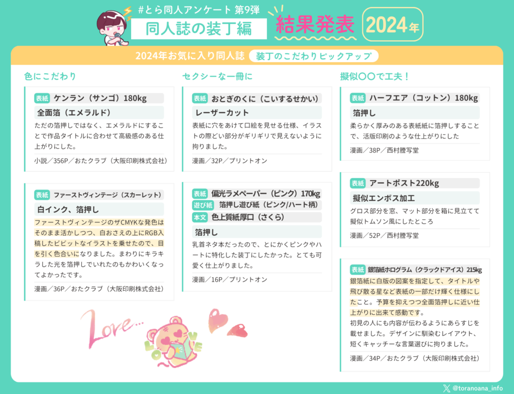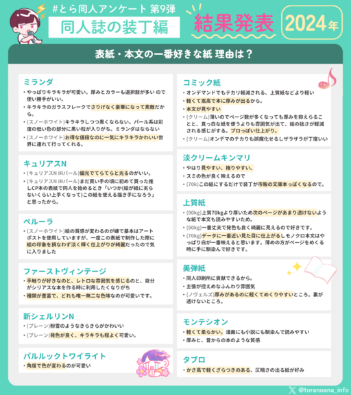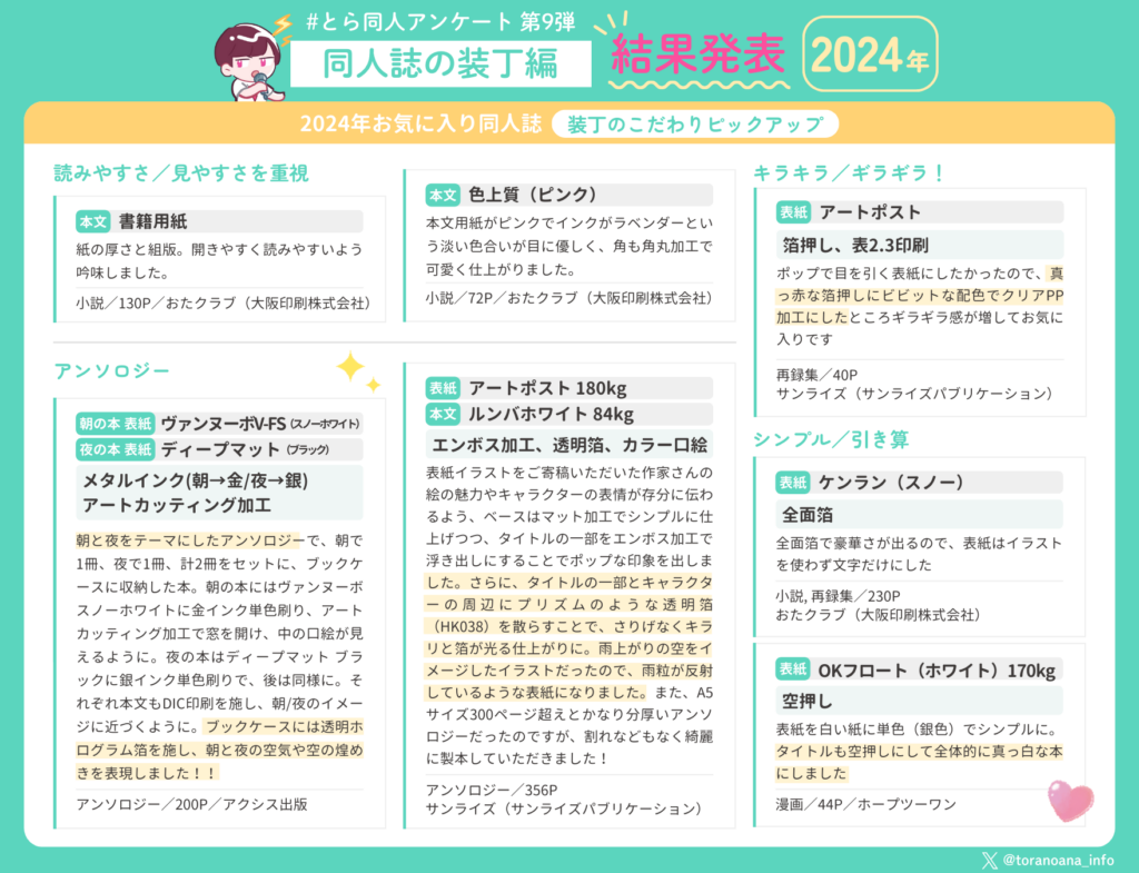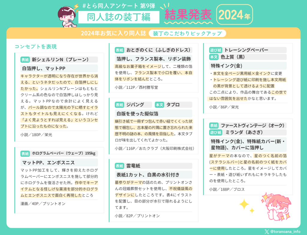 とら同人アンケート🐯「同人誌の装丁 2024年版」結果発表🎉