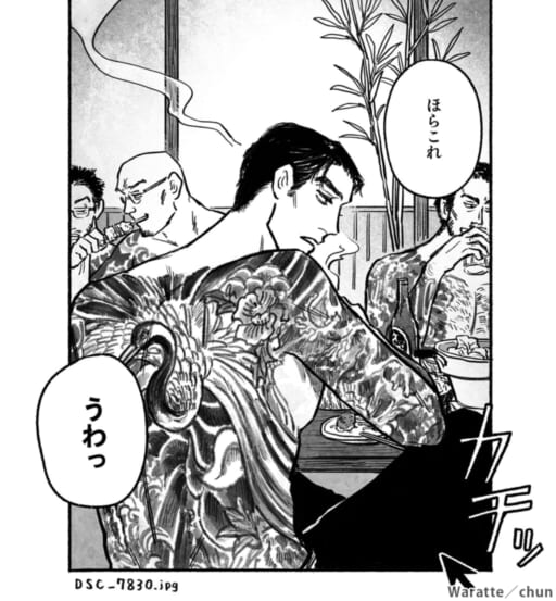 쿄지의 문신이 확 드러나는 장면이 마음에 듭니다.