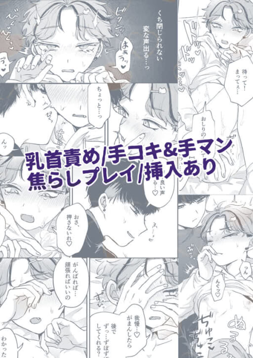 クール美形攻め×可愛い猫系受けの甘々いじわるプレイの詰まった作品となります。乳首責めと焦らしプレイでとろとろエッチに仕上げました。