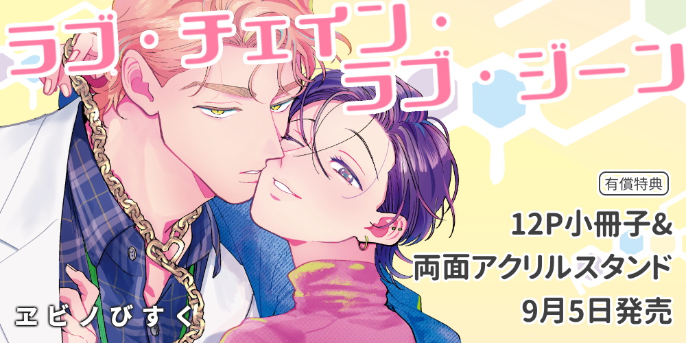 ヱビノびすく先生新刊『ラブ・チェイン・ラブ・ジーン』が9月5日発売!12P小冊子&両面アクスタ付きとらのあな限定版も♥