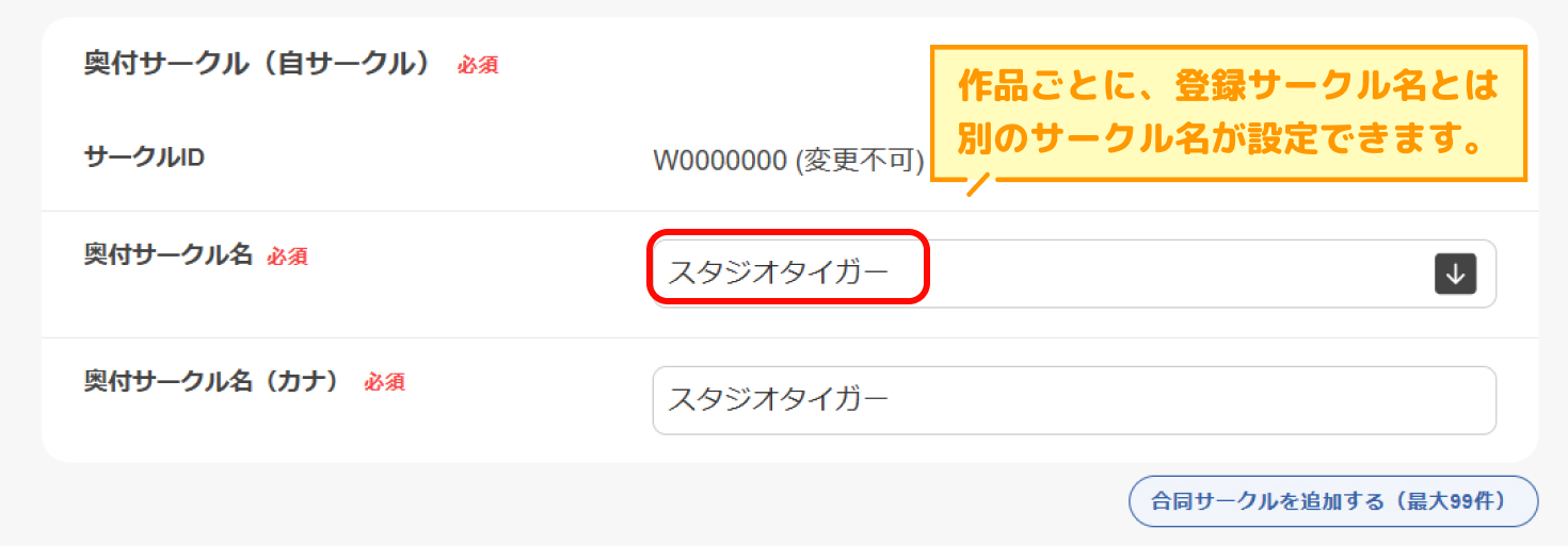 発行作品のジャンル、カップリングごとに「サークル名」を使い分けたい場合は