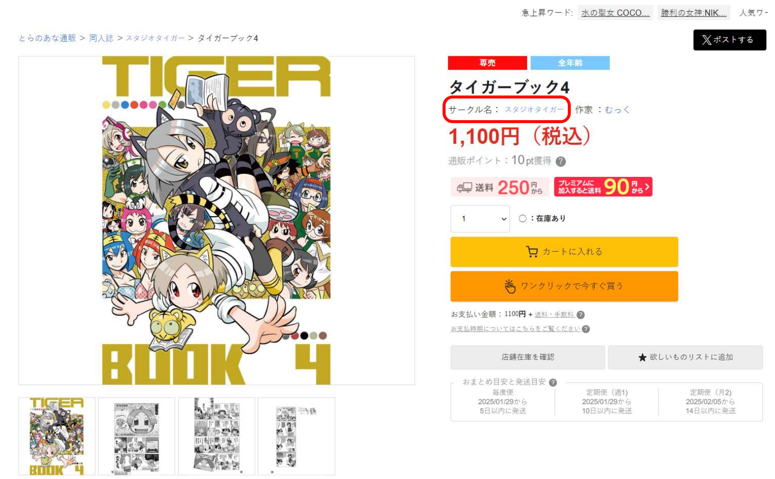 虎の穴委託の際には、発行作品別に「サークル名」表記が変えられます!