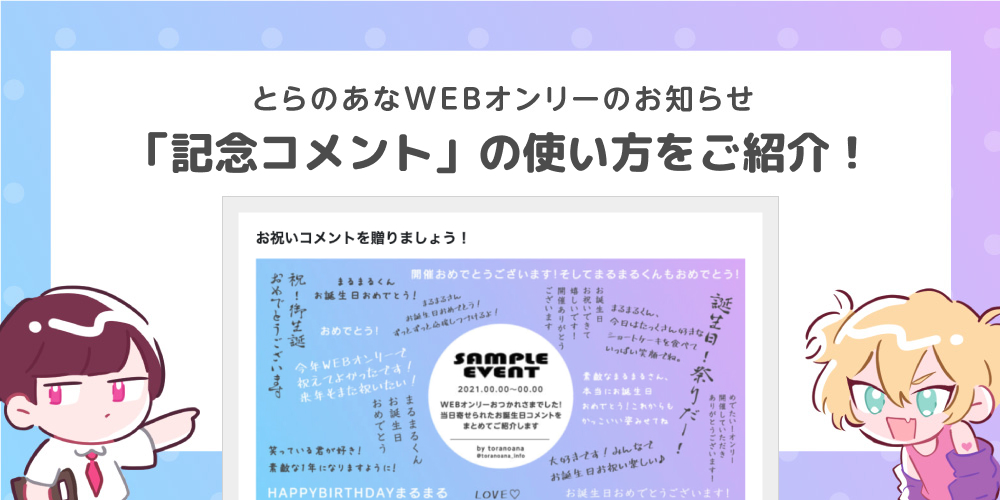 とらのあなWEBオンリー上でWEBアンソロジーが作成できる「記念コメント」について、その使い方や作成手順を解説します!
