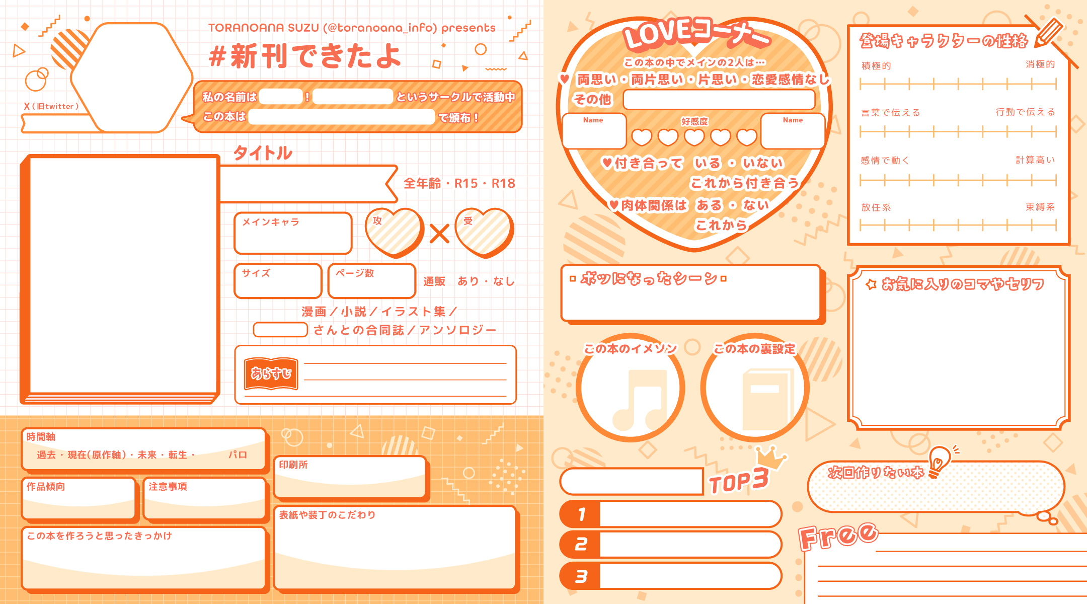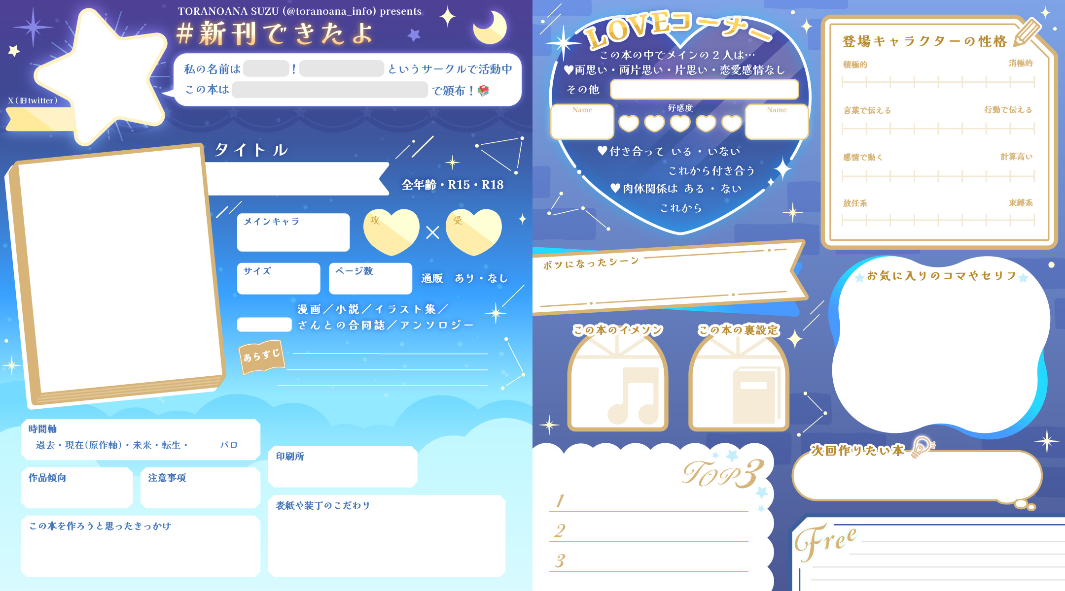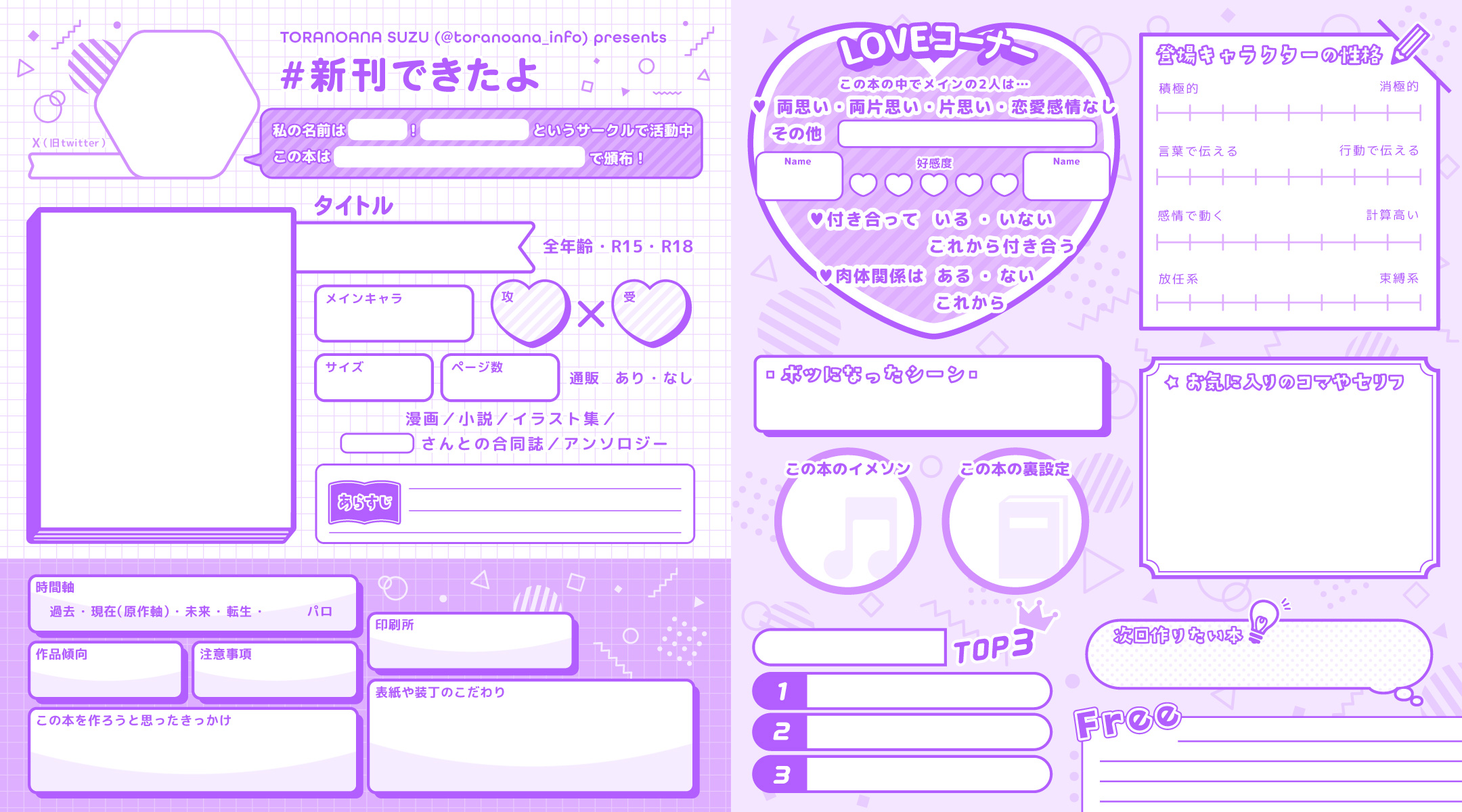 プロフ帳感覚でご自身の新刊📙✨を紹介出来る『#新刊できたよ』シートを配布中❣️