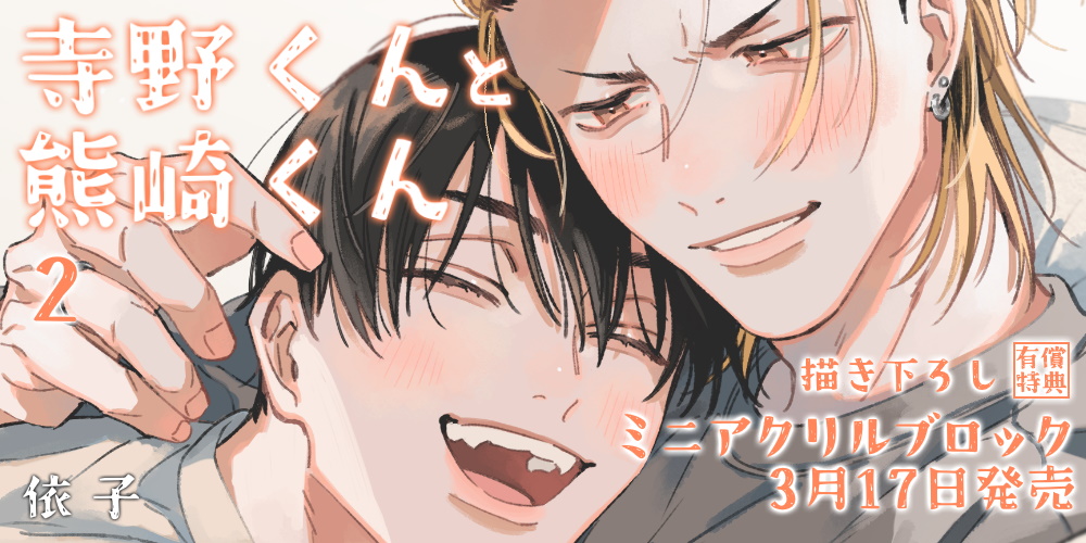 依子先生新刊『寺野くんと熊崎くん 2』が発売!描き下ろしミニアクリルブロック付きとらのあな限定版も♥