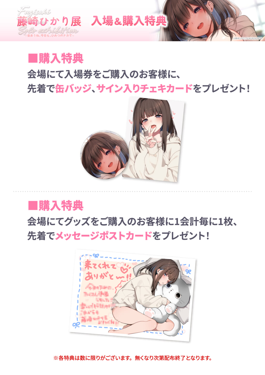 会場にてグッズをご購入のお客様に、一会計につき一枚、藤崎ひかり先生メッセージポストカードをプレゼントいたします。