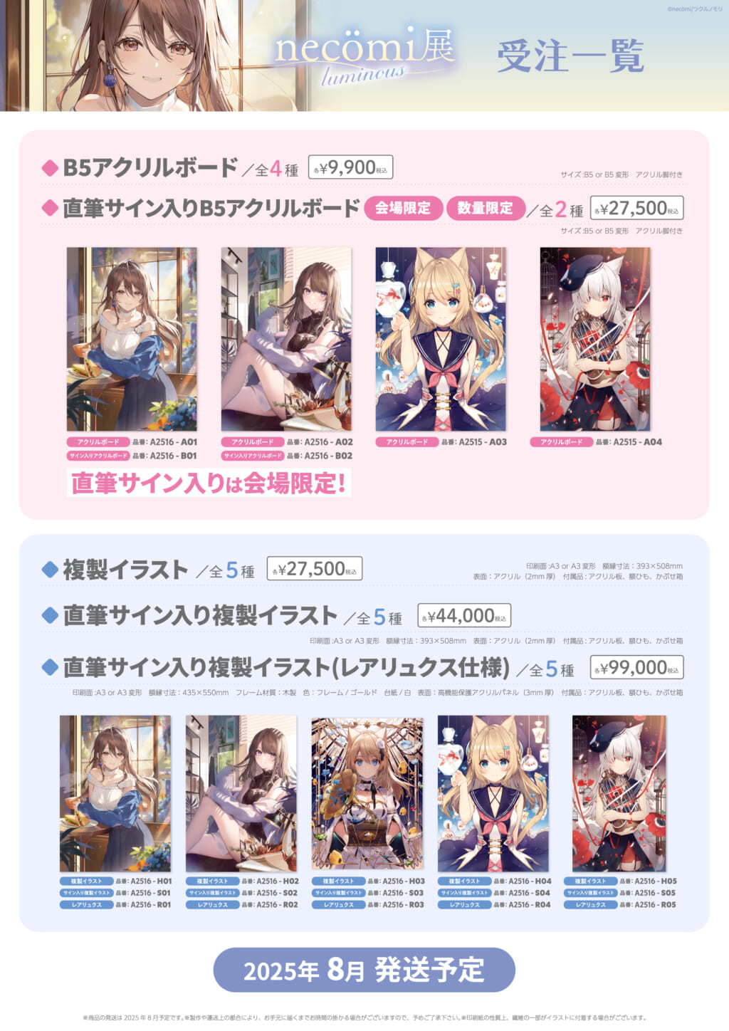 necömi先生の直筆サインが入ったグッズの抽選販売をいたします。
