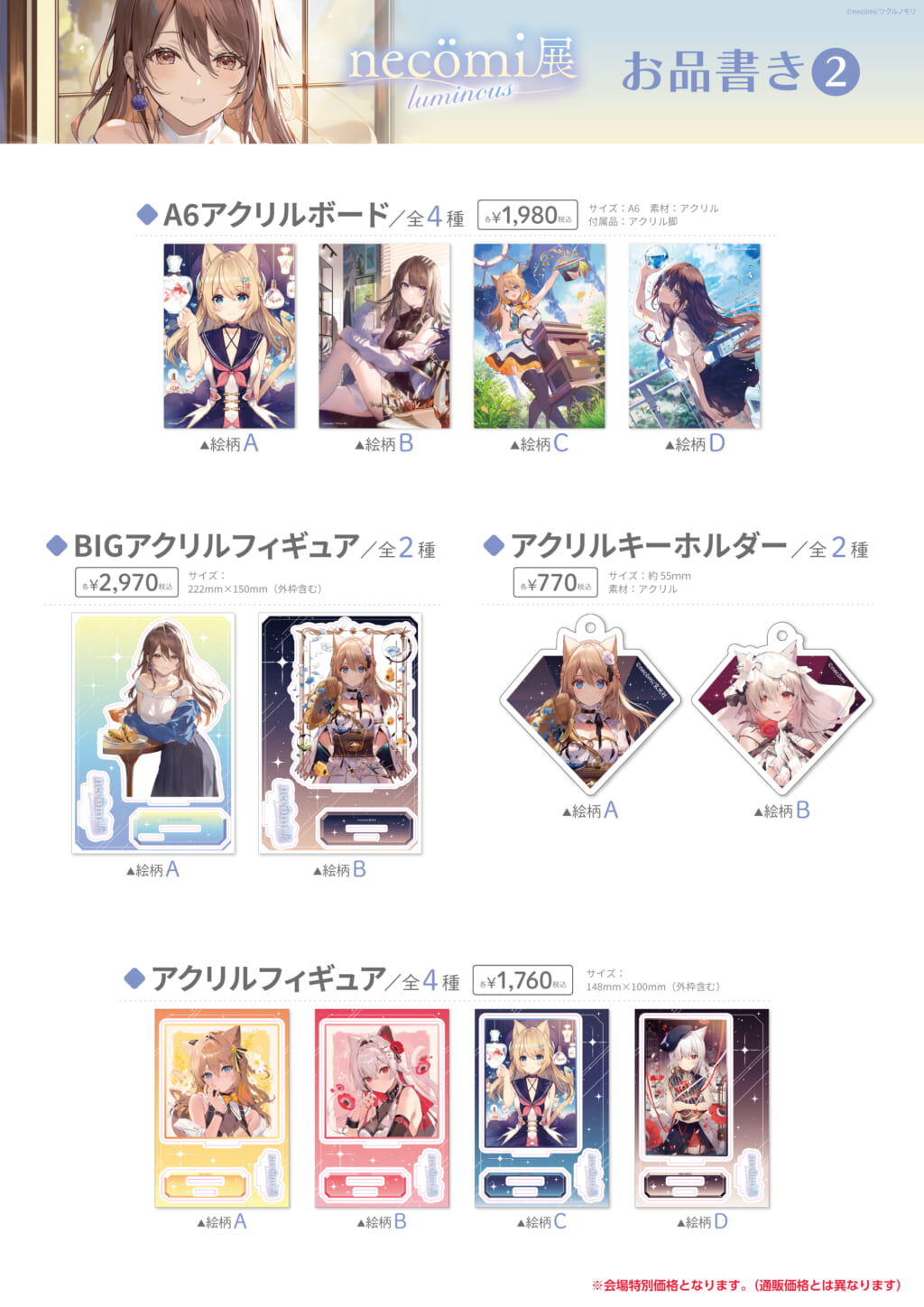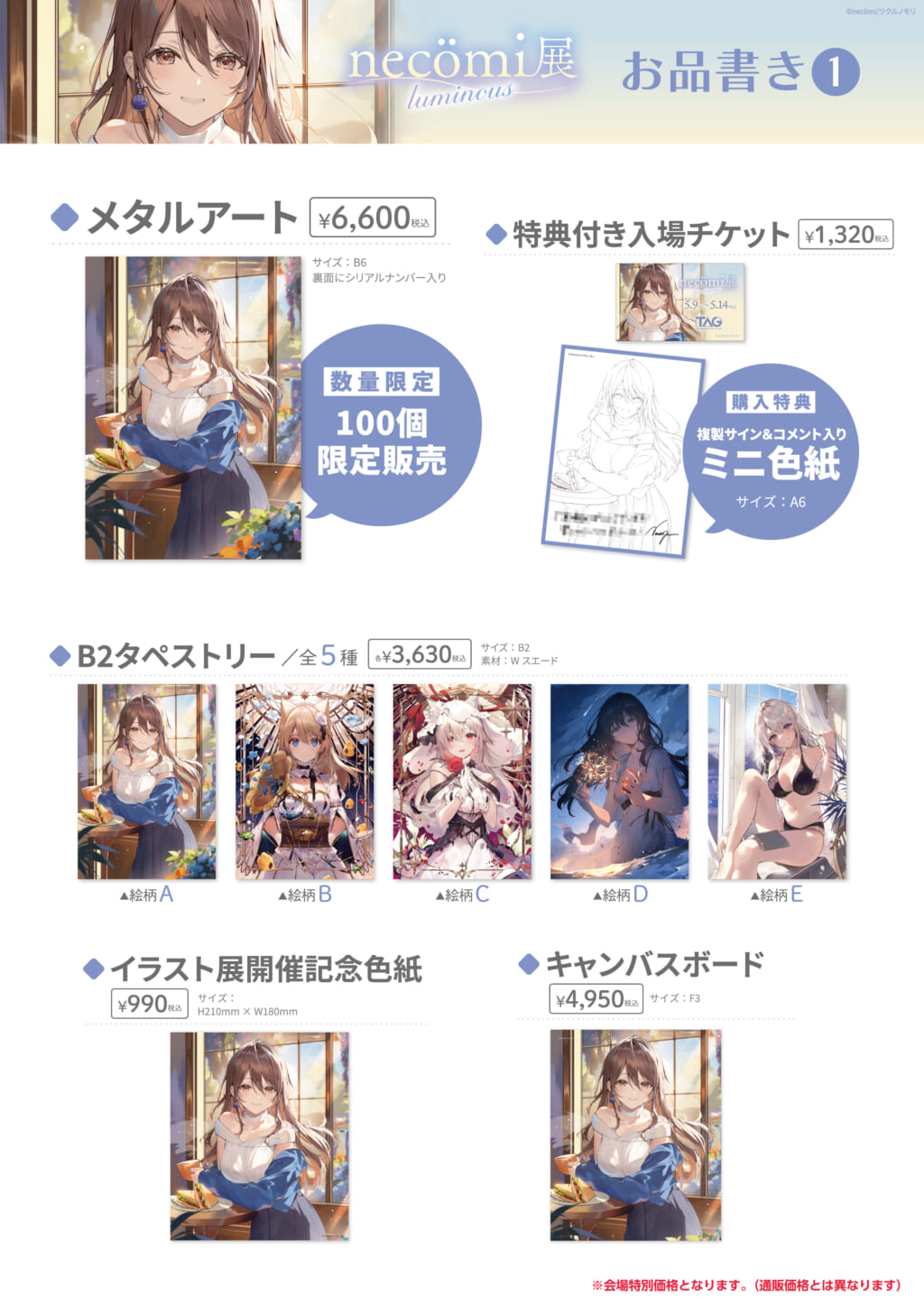 ※現物に関しまして手書きおよび会場にて展示いておりますため、多少の破損・汚れ等が発生すること容赦ください。