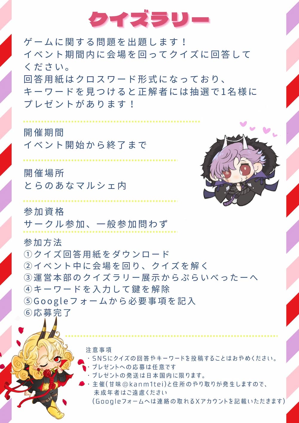 前回モブとらさんをあまり役立てられなかったので、今回はクイズラリーに使用しました。たくさんの方に参加いただけて嬉しかったです!