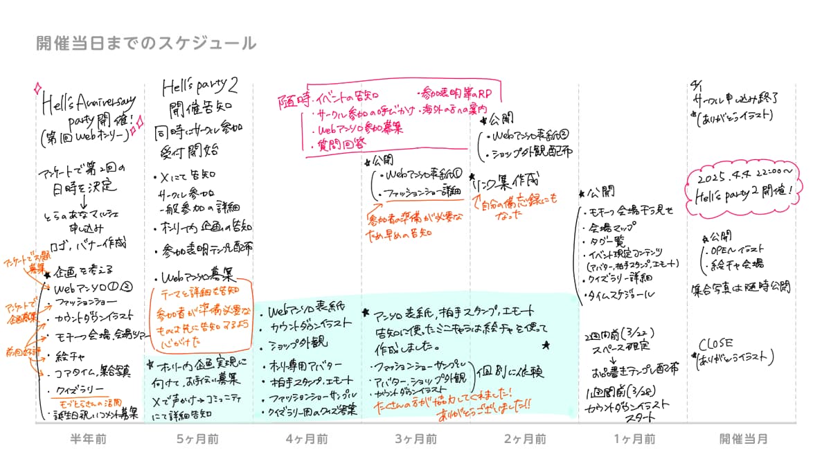 イベントの立ち上げから開催当日までのスケジュールを簡単に教えてください