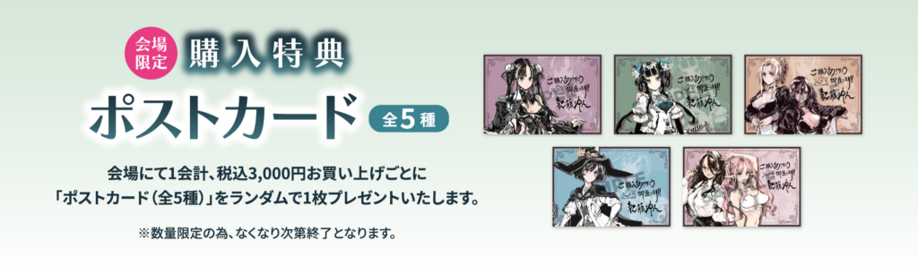 1会計3,000円(税込)以上お買い上げごとに、ランダムで1枚プレゼントいたします。