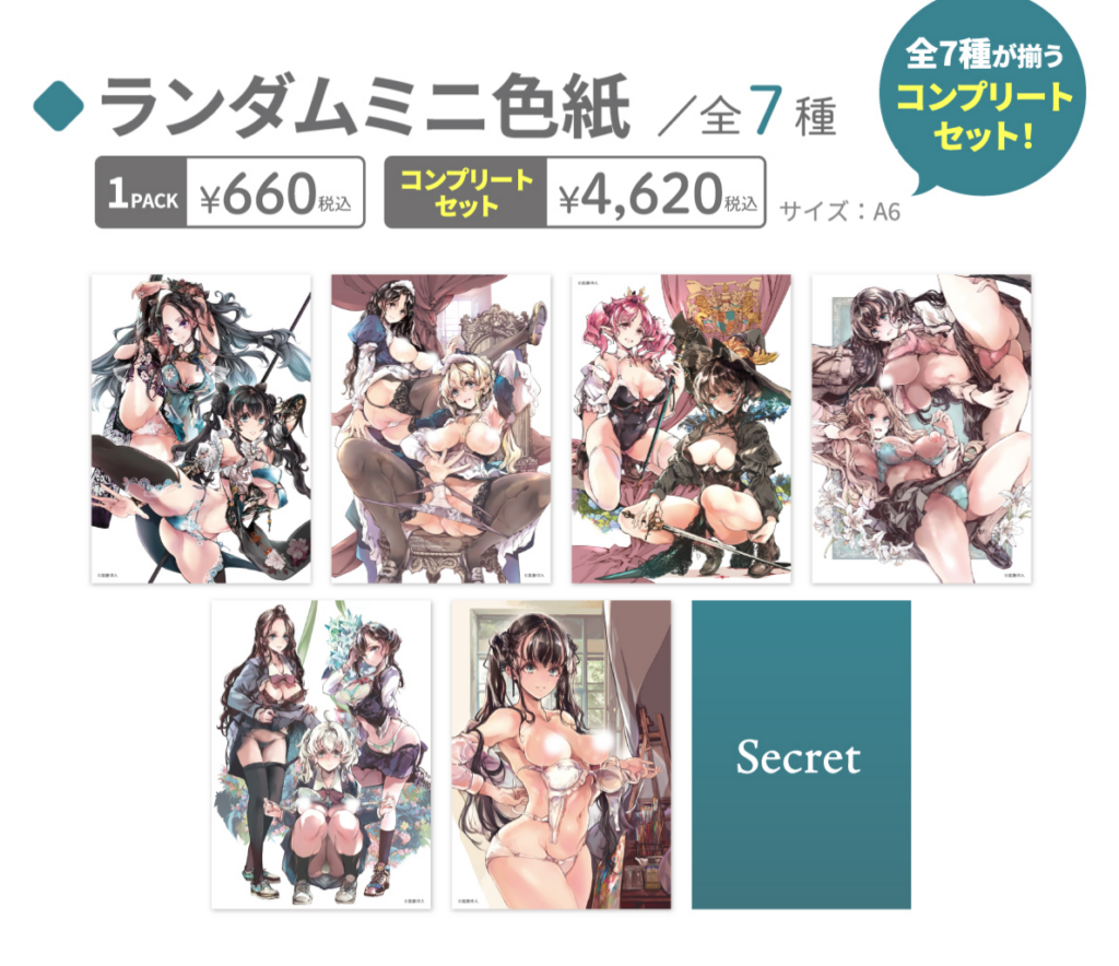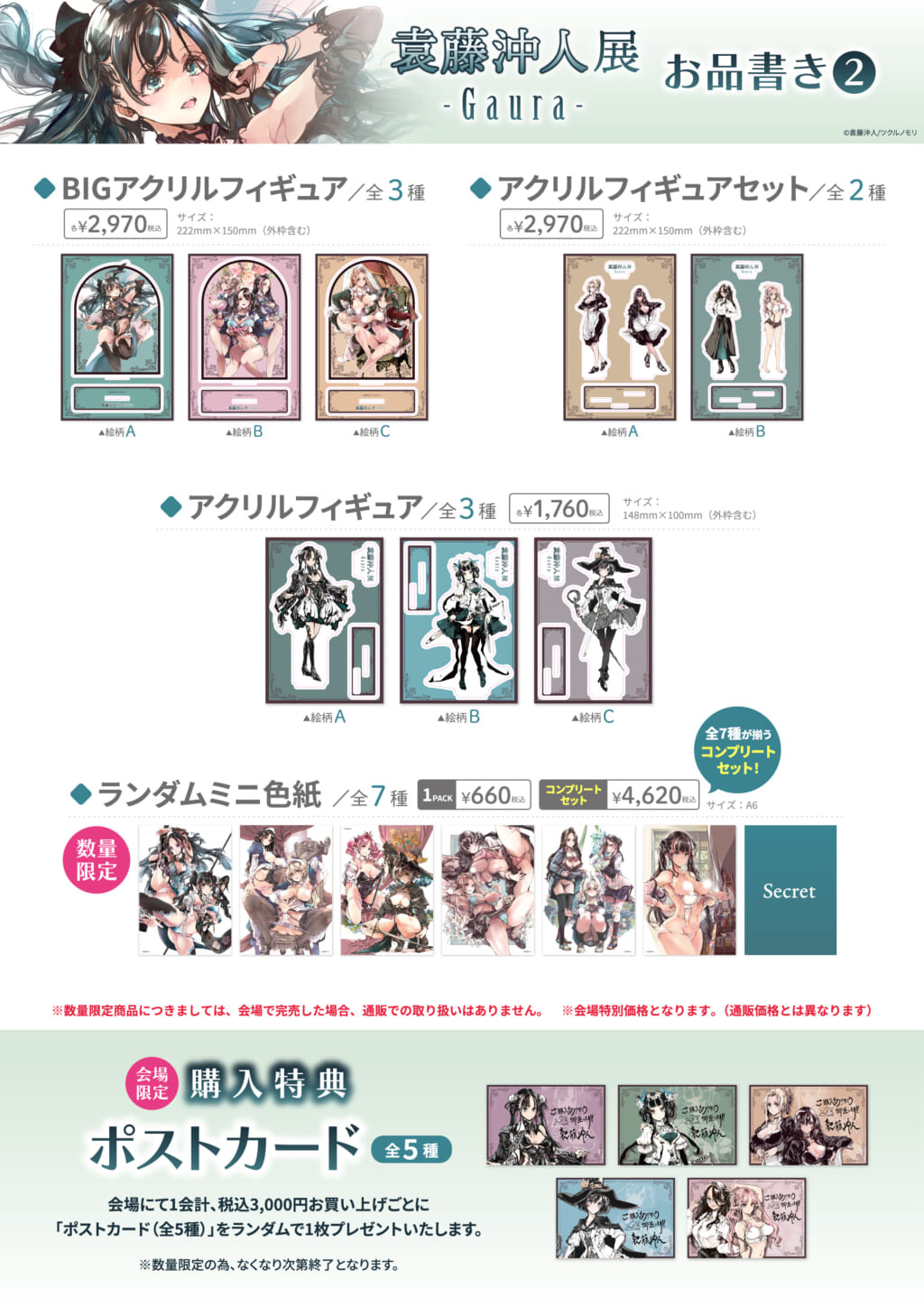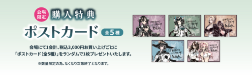 ※「イラスト展開催記念色紙」「ミニ色紙」など数量限定商品は会場にて完売した場合、通販での取り扱いはございません。