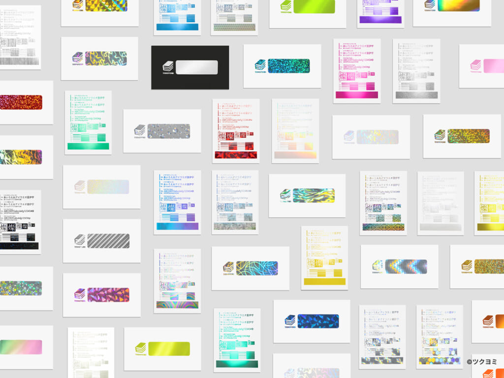 一番は金や銀のシンプルなものですが、透明ホログラム、偏光箔なども人気があります。