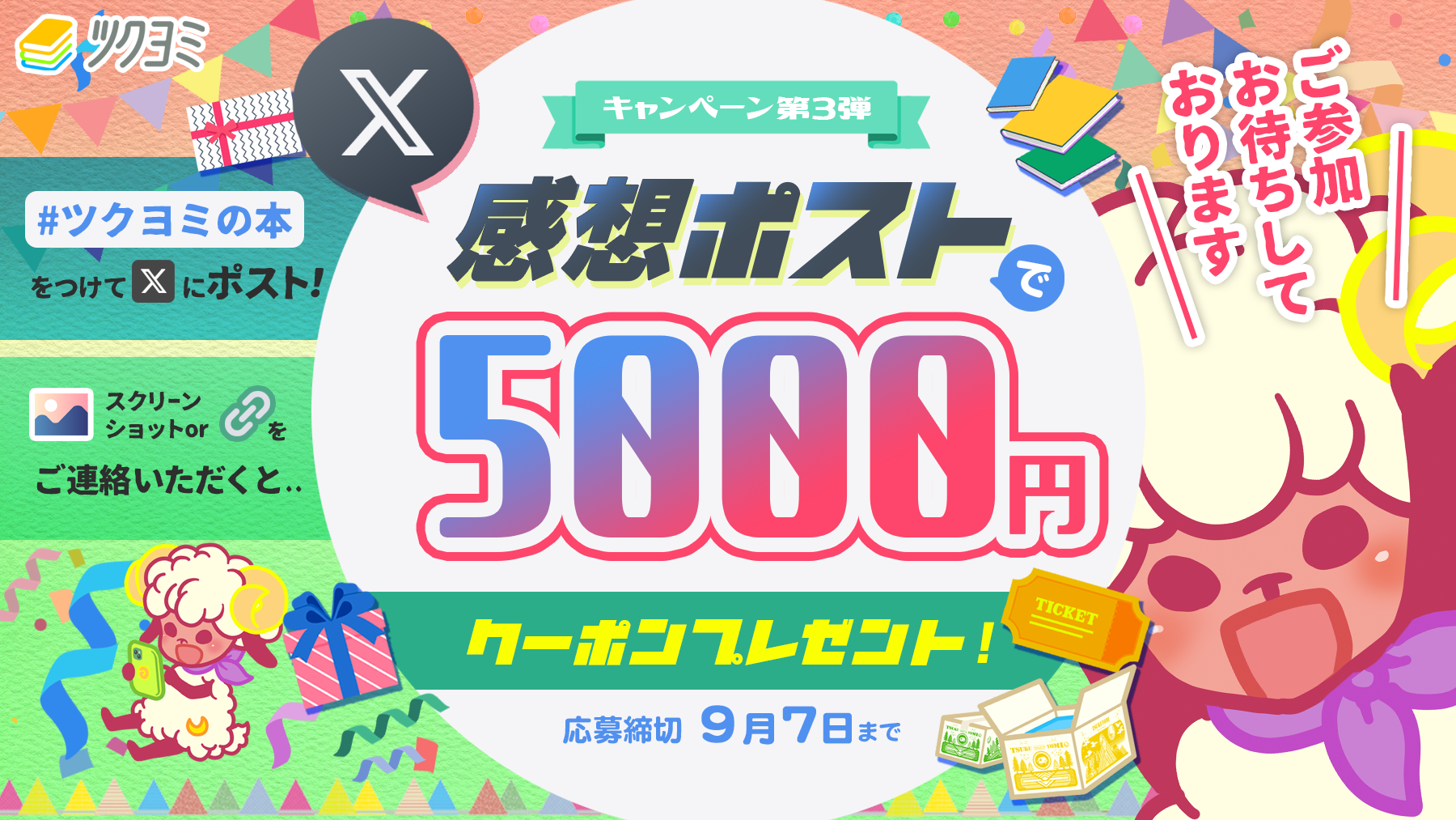 「#ツクヨミの本」のタグをつけてポストいただいたお客さま全員に、5000円分のクーポンをお送りしています。