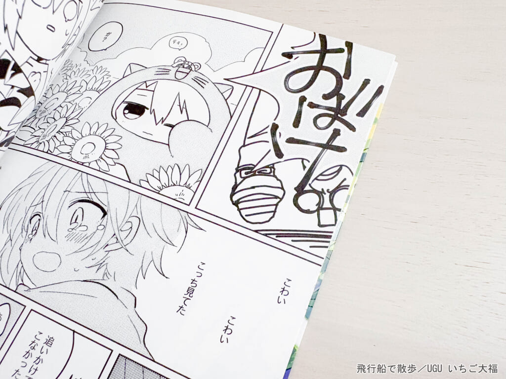 レイアウトは最初に出した『ひまわりとさよなら。』を踏襲することは決めていたのですが、どんなシーンを描くのかはいちご大福さんと一緒に話し合って決めました。