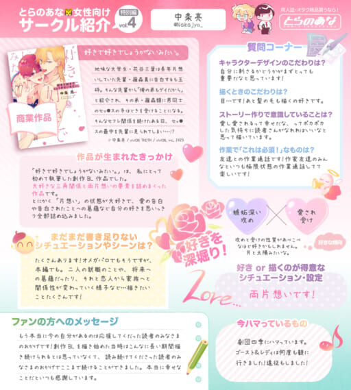 「エデンの林檎」中条亮さん💕とらのあな🐯女性向けサークルさん紹介 -特別編vol.4-