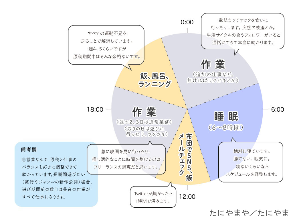 「今回はBLにしよう」「最新作でこのキャラ同士の関係性が多かったから…」など構成がしやすく、ネタ帳がないと倍くらい時間がかかると思います。