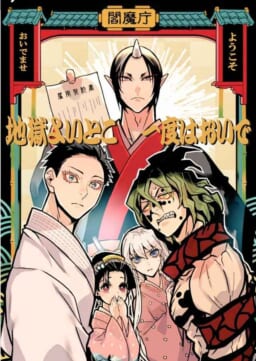 鬼滅の刃で悲しい過去を持つ鬼たちが、地獄で刑罰を受けた後、赦されて鬼灯様の元で楽しく暮らしている様子を描いたコラボ漫画です。