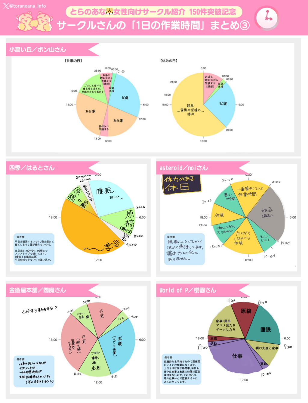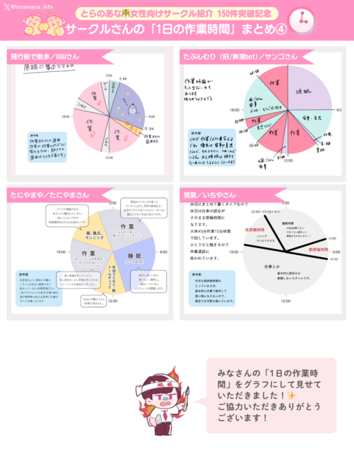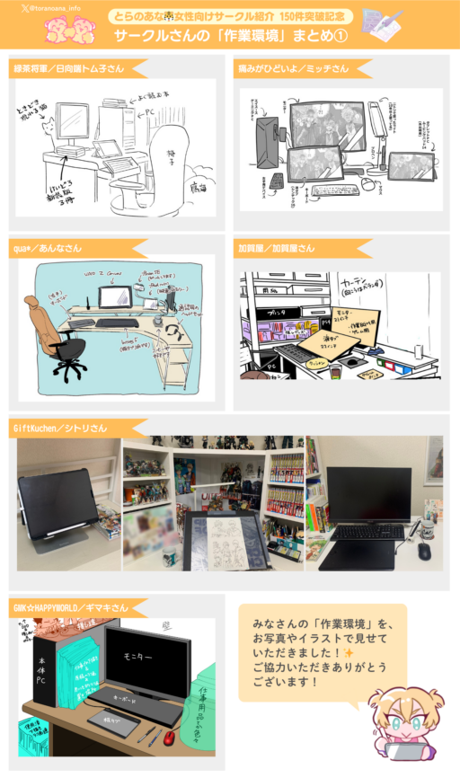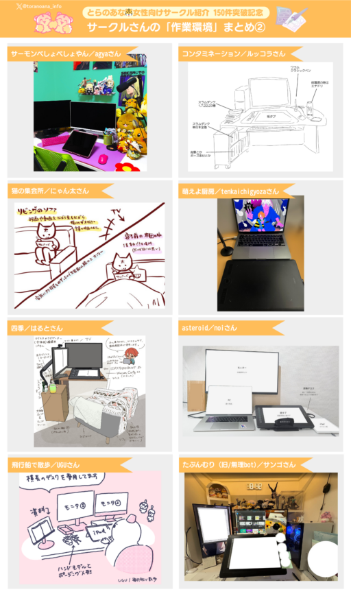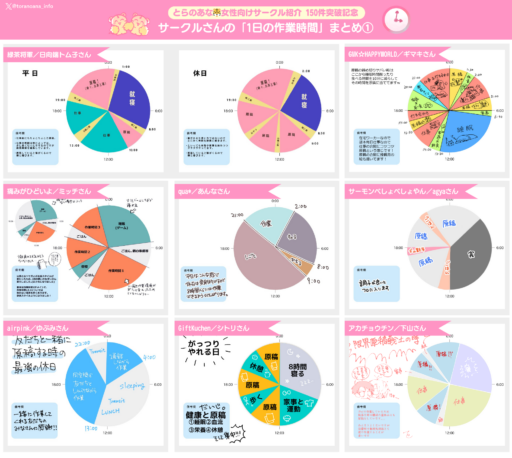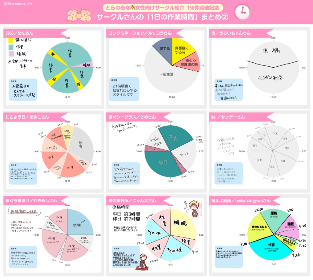 以前それぞれの「とらのあな🐯女性向けサークル紹介」個別記事にて掲載していた、「1日の作業時間/作業環境」をまとめました❣️