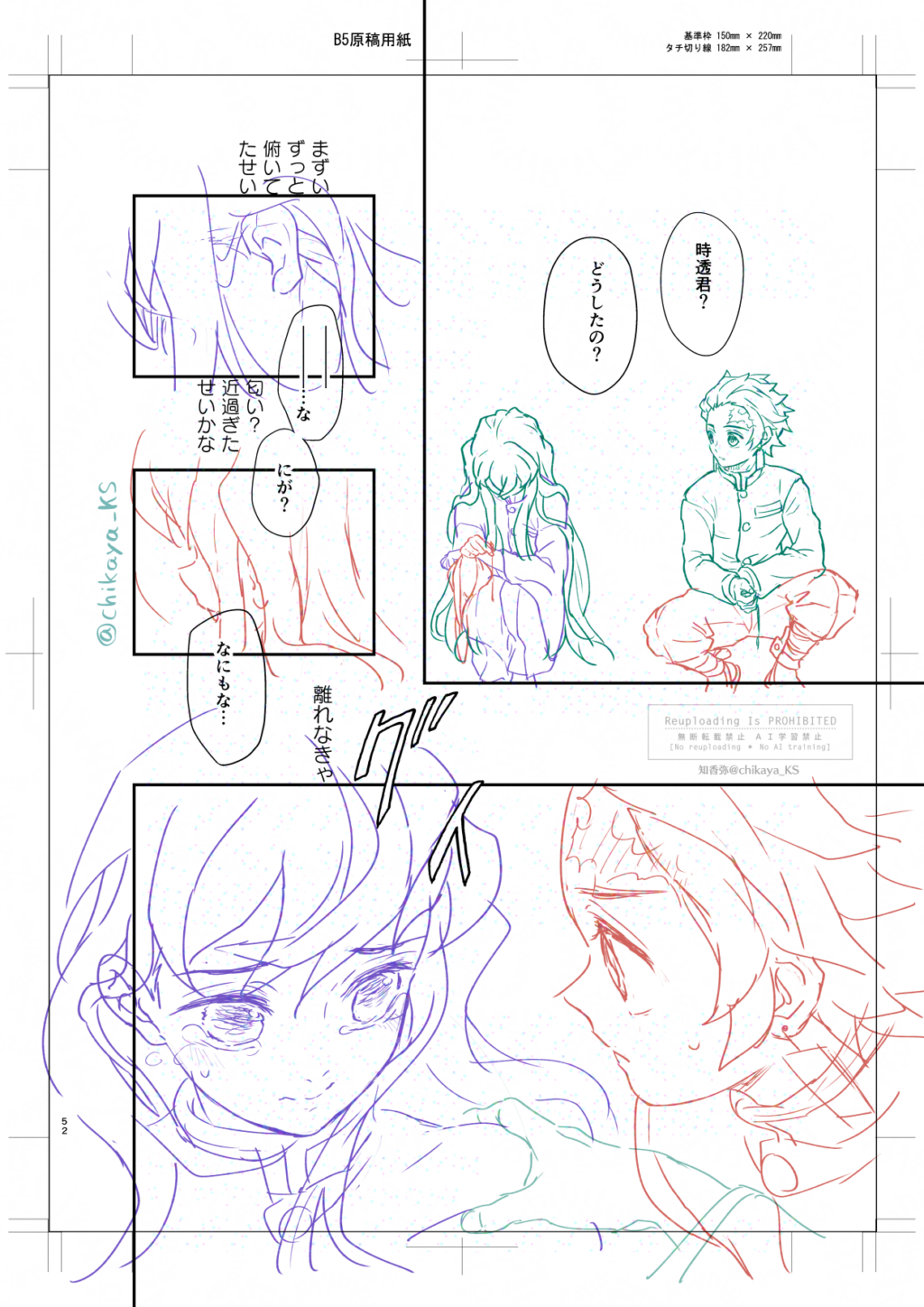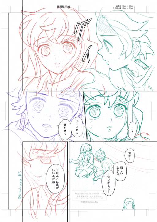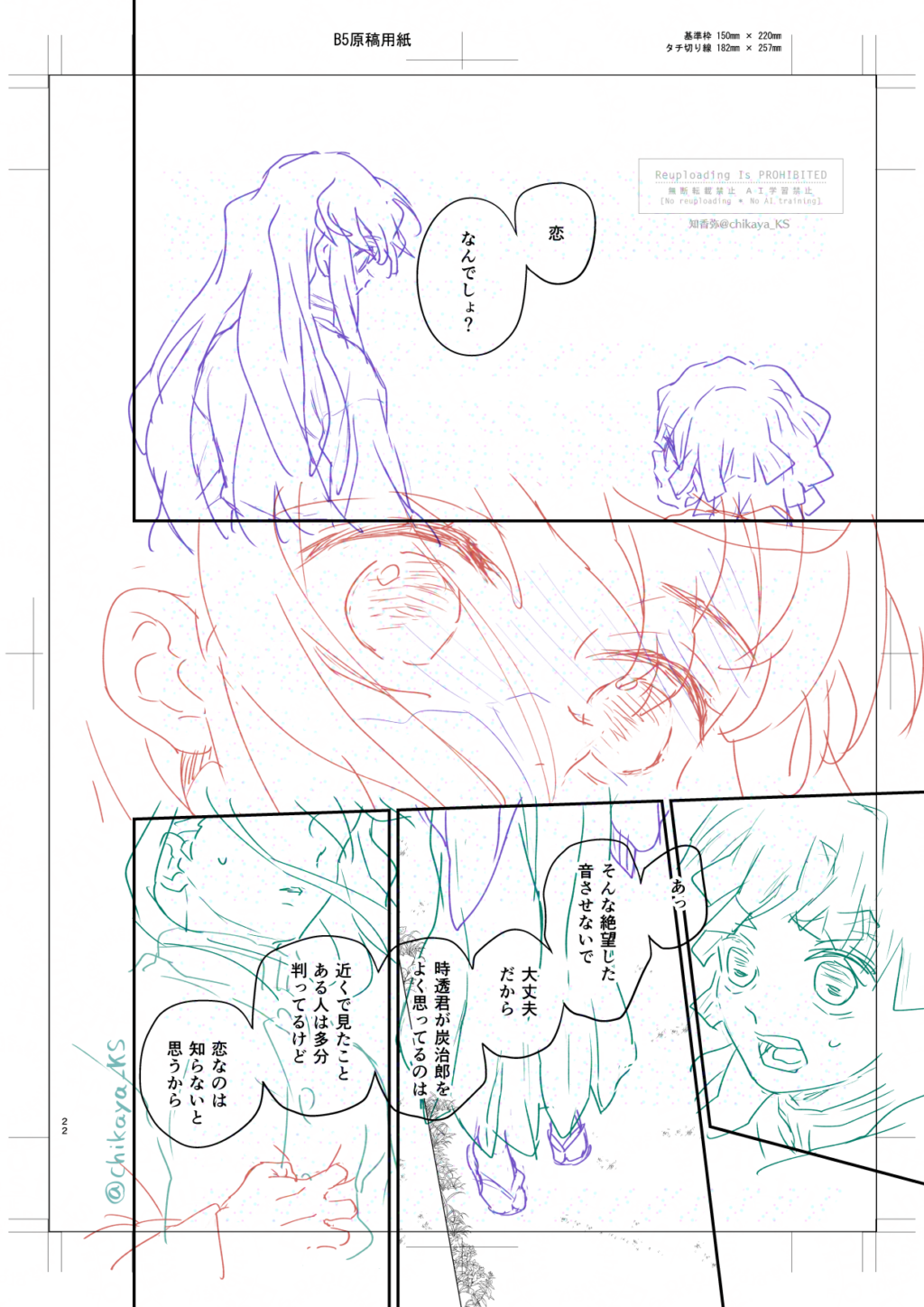 原作を読み大好きだった炭治郎と無一郎の関係性がアニオリエピソードで更に肉付けされているのを観て、二人の関係についての大きな可能性を感じ、この物語を思いついたため描こうと決めました。