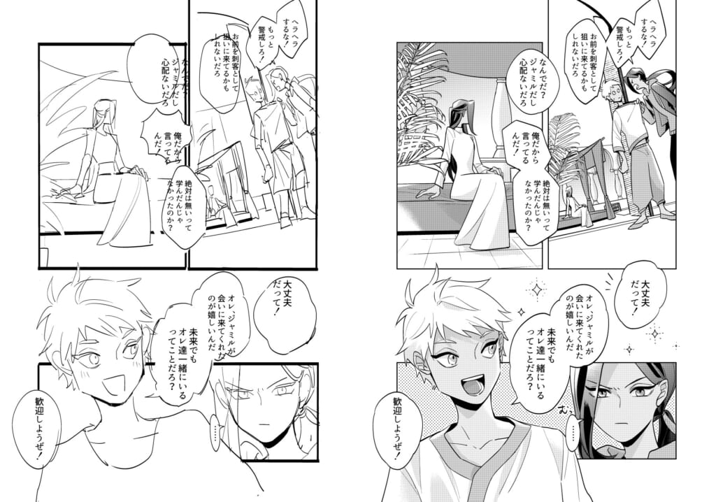 無害だと思っていた未来から来た大人ジャミルに裏切られるいたいけな少年カリムくんが見たくて描きました。