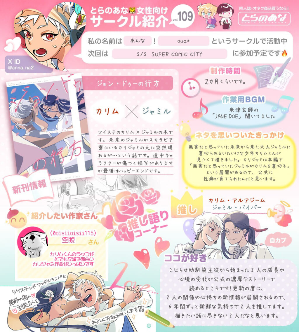 サークルさん紹介、第109回目はサークル「qua*」の「あんな」さんです🌟