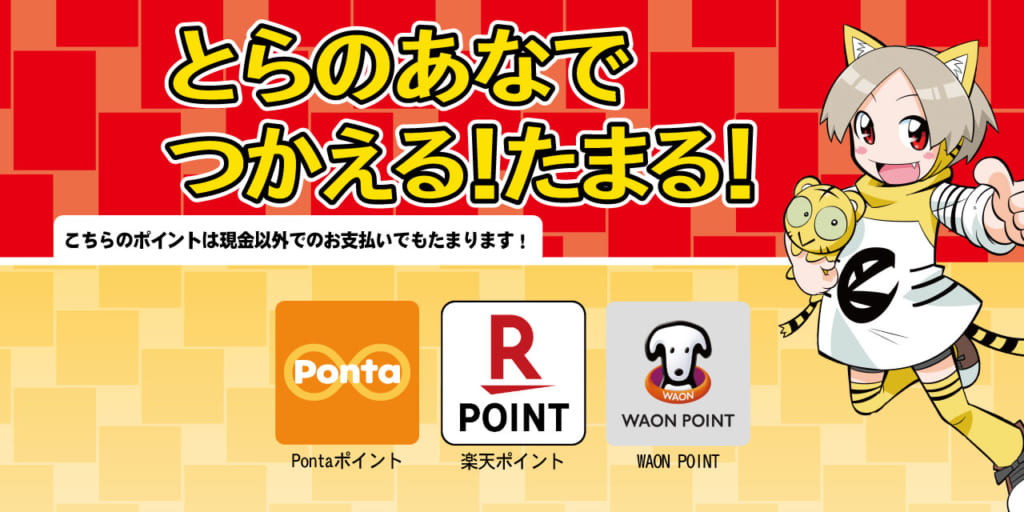 とらのあな全店舗にて【dポイント】【楽天ポイント】の2種類のポイントが1ポイント=1円でつかえます!