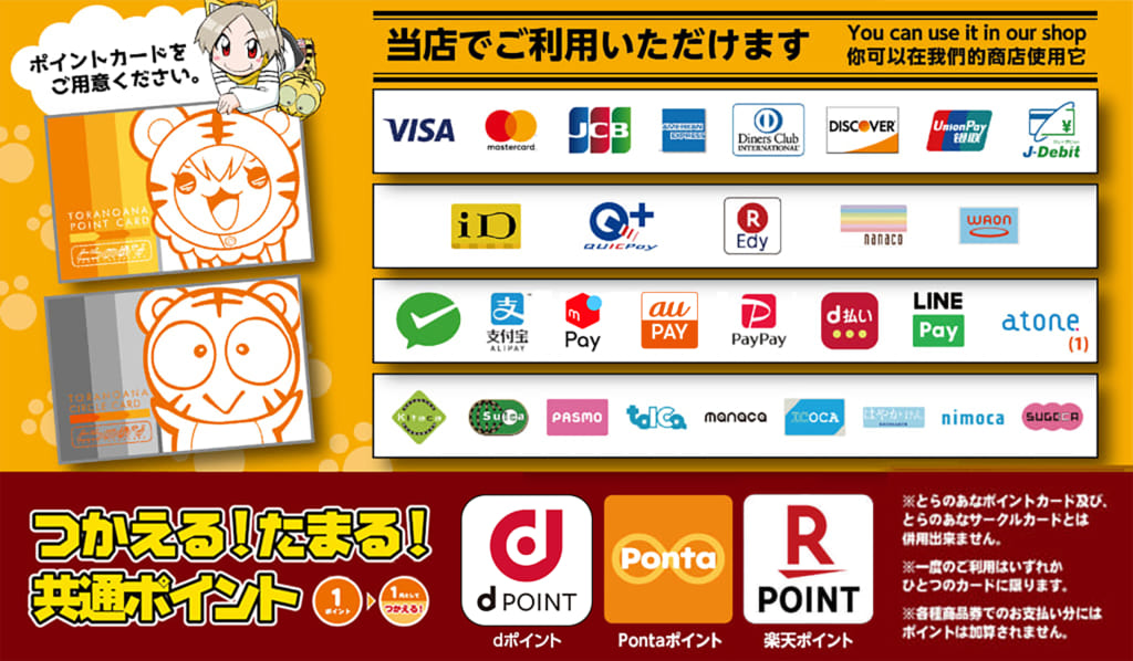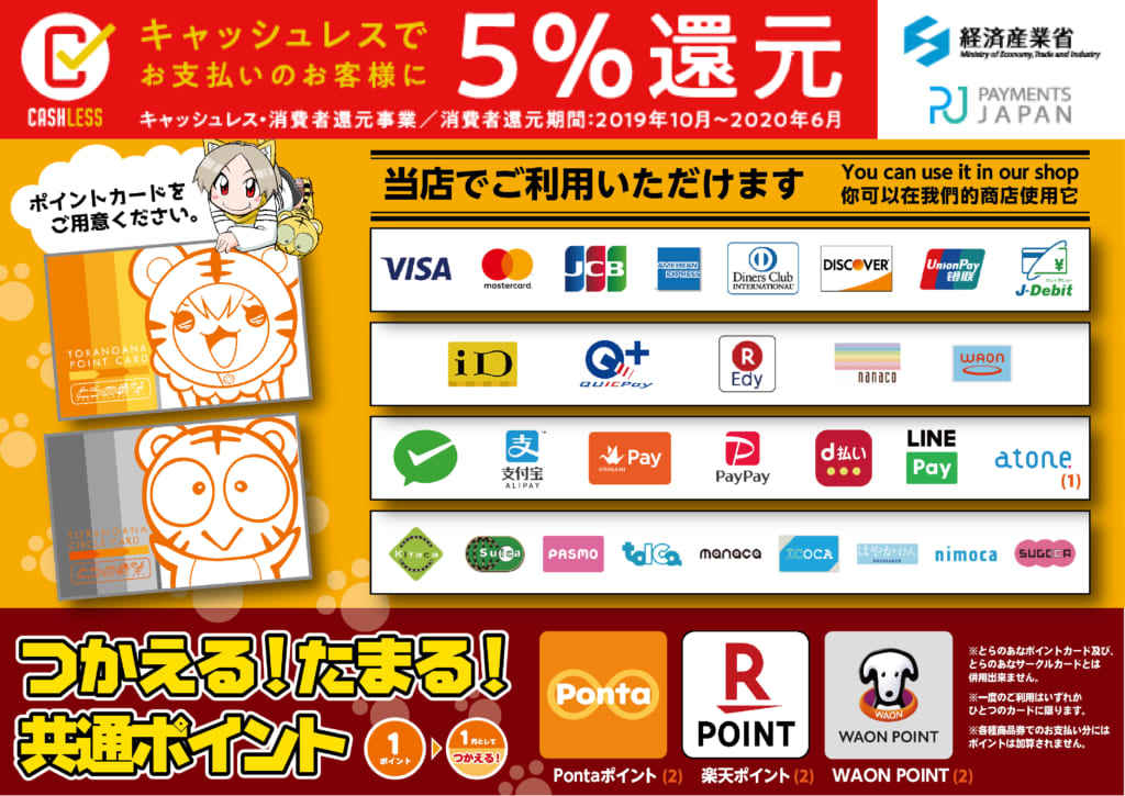 【9/30更新】 とらのあなの店舗で利用できるキャッシュレス支払方法一覧