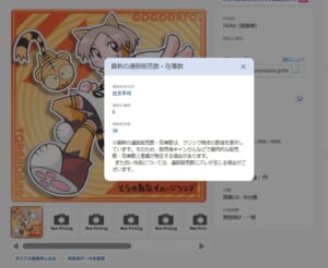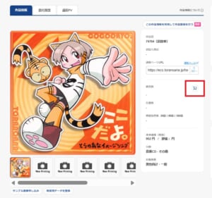 ②「作品詳細」画面:【カートマーク】をクリックすると通販販売数、在庫数がポップアップで表示されます。