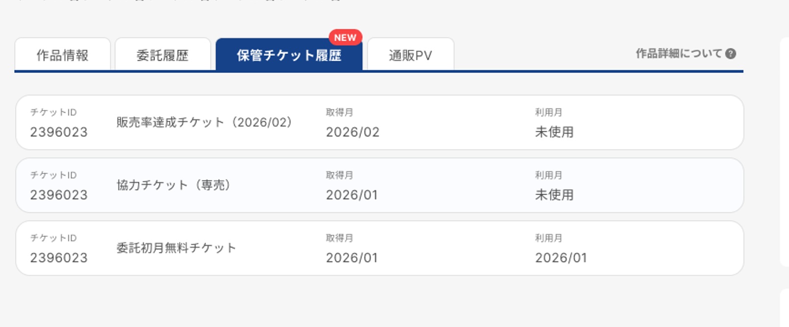 販売協力プランにより獲得した「保管料無料期間(保管料無料チケット)」については、